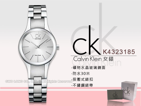 K4323185 CK女錶 不銹鋼錶帶 Calvin Klein 礦物水晶玻璃鏡面 防水30米