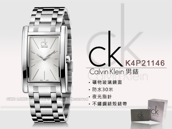 K4P21146 CK中性錶 不銹鋼錶帶 Calvin Klein 礦物玻璃鏡面 防水30米