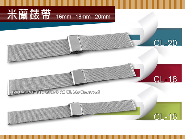 CL-16/18/20 16mm / 18mm / 20mm米蘭錶帶