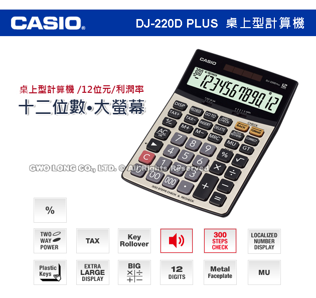DJ-220D PLUS CASIO 桌上型商用計算機 大螢幕 12位數 步驟記憶功能