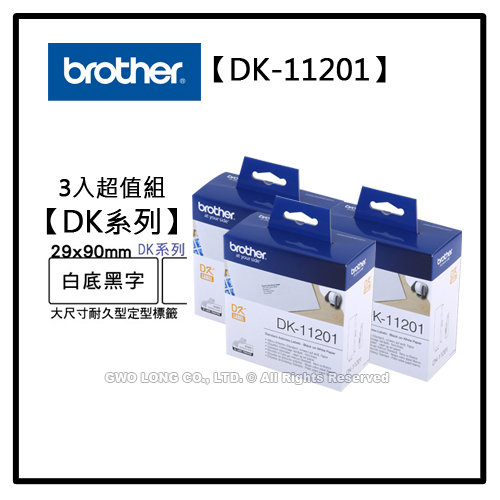 DK-11201 DK系列 三入超值組 BROTHER 29x90mm大尺寸耐用型定型標籤機色帶 耗材