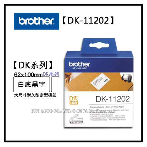 DK-11202 DK系列 BROTHER 62x100mm大尺寸耐用型定型標籤機色帶 耗材