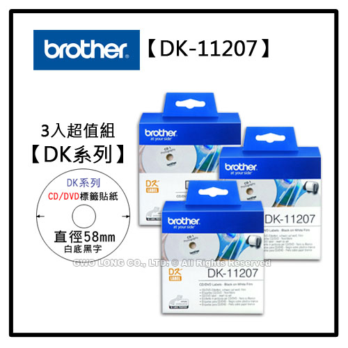DK-11207 三入超值組 DK系列 BROTHER 58mm直徑CD/DVD 圓形耐用型定型標籤機色帶 耗材