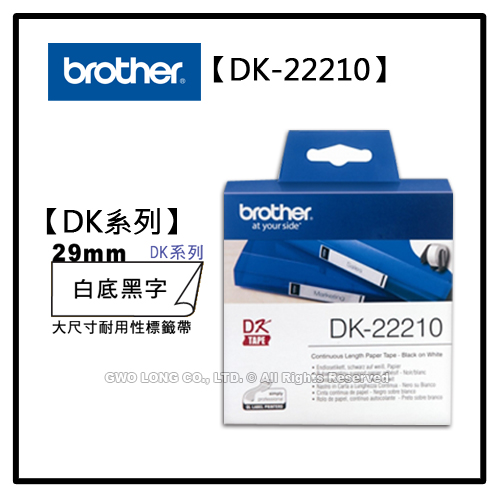 DK-22210 DK系列 BROTHER 29mm大尺寸耐用性標籤機色帶 耗材