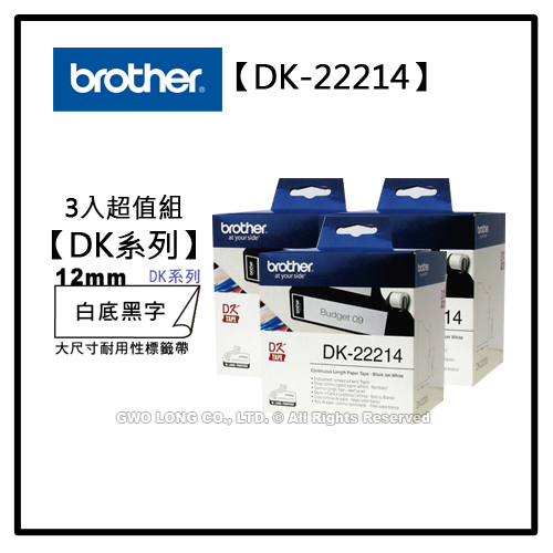 DK-22214 超值三入組 DK系列 BROTHER 12mm大尺寸耐用性標籤機色帶 耗材