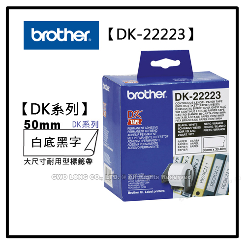 DK-22223 DK系列 BROTHER 50mm大尺寸耐用性標籤機色帶 耗材