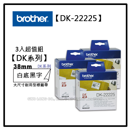DK-22225 三入超值組 DK系列 BROTHER 38mm大尺寸耐用性標籤機色帶 耗材