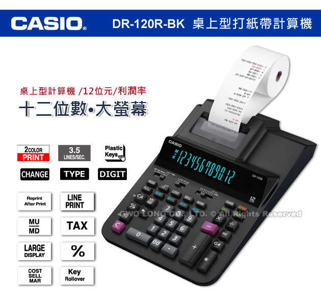 DR-120R CASIO打紙帶計算機 12位數全新品 保固一年 國隆