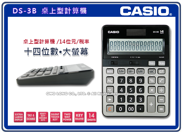 DS-3B CASIO 桌上型商用計算機 雙電力 14位數 金屬面板