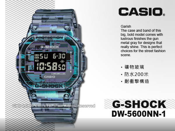DW-5600NN-1 CASIO G-SHOCK 電子錶 男錶 橡膠錶帶 半透明 雜訊意象設計 防水 200米 DW-5600