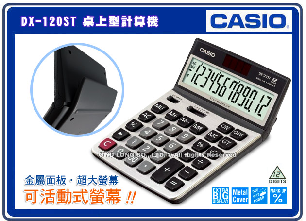 DX-120ST CASIO 桌上型商用計算機 大螢幕 12位數 太陽能雙電力