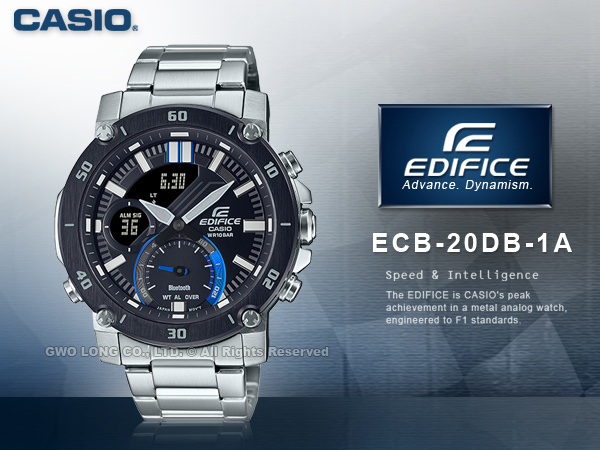 ECB-20DB-1A CASIO EDIFICE 藍牙智慧錶款 雙顯 男錶 不鏽鋼錶帶 黑色 防水100米 ECB-20DB
