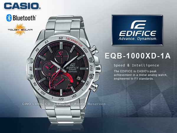 EQB-1000XD-1A CASIO EDIFICE 三眼男錶不鏽鋼錶帶 太陽能 藍牙 藍寶石水晶玻璃 防水100米 EQB-1000XD