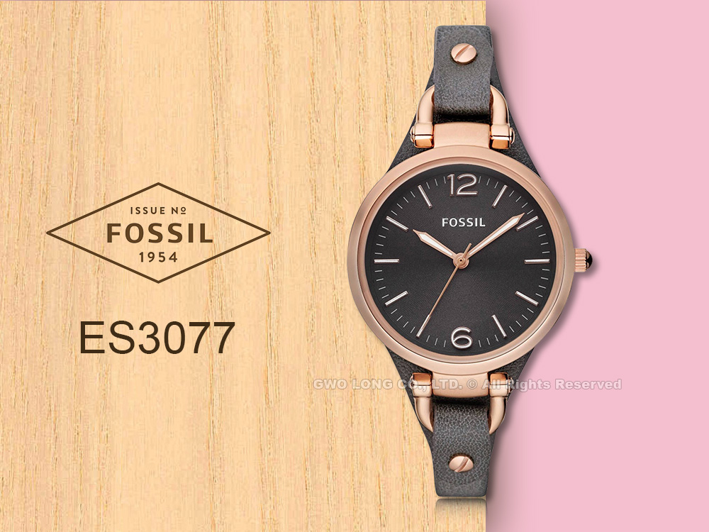 ES3077 FOSSIL 氣質石英女錶 皮革錶帶 黑色錶面 生活防水