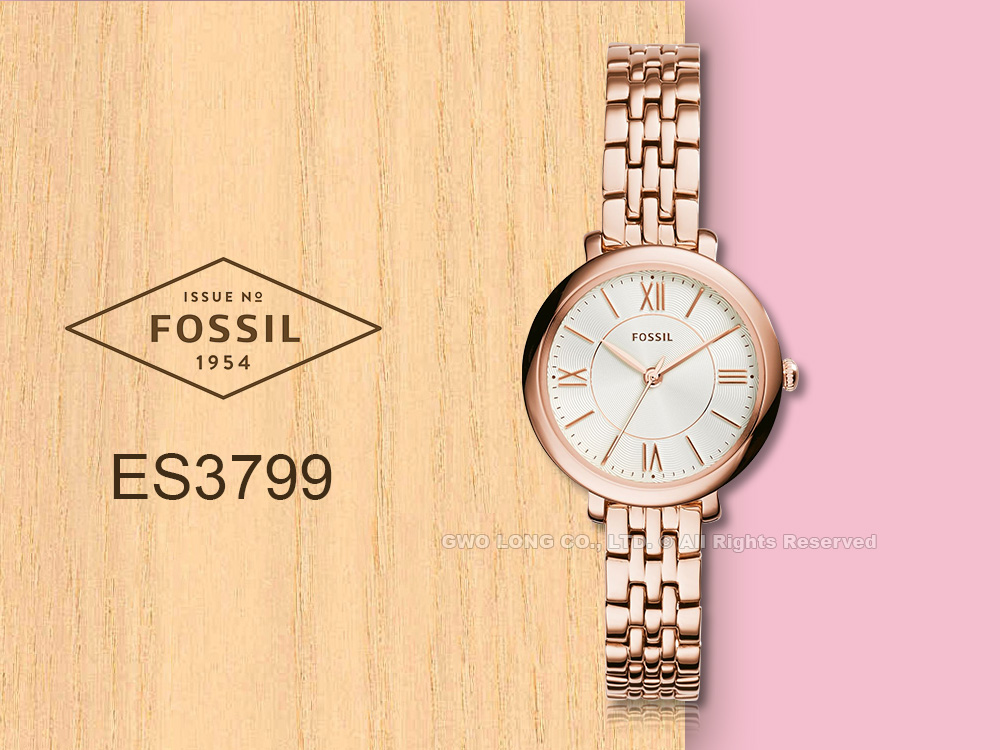ES3799 FOSSIL 簡約石英女錶 不銹鋼錶帶 玫瑰金 生活防水 羅馬數字
