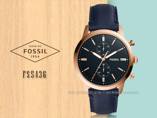 FS5436 FOSSIL 都會三眼計時男錶 海軍藍錶面 防水50米
