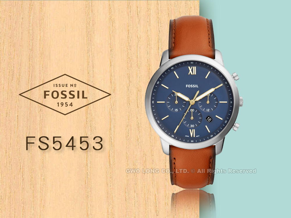 FS5453 FOSSIL 三眼石英中性錶 皮革錶帶 咖啡 防水 羅馬數字