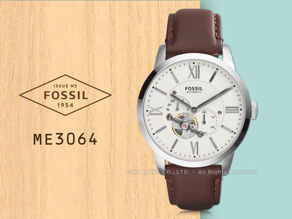 ME3064 FOSSIL 機械男錶 羅馬數字 精緻工藝 皮革錶帶 自動上鏈機芯 防水50米