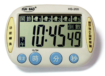 HS-200 FUH BAO 電子式計時器 五組鬧鈴功能 一組倒數 大字幕顯示 掛勾 吸鐵 直立