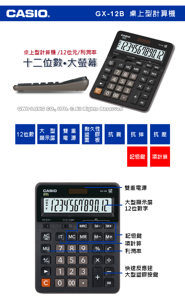 GX-12B CASIO 桌上型商用計算機 12位數 大螢幕