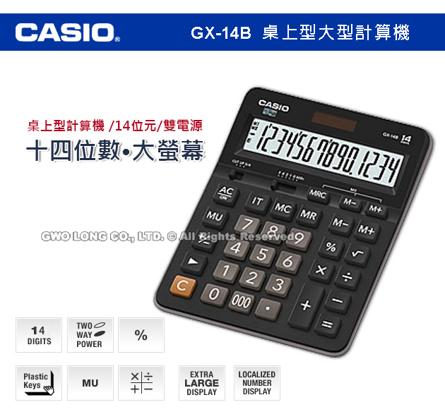 GX-14B CASIO 桌上型商用計算機 14位數 大螢幕