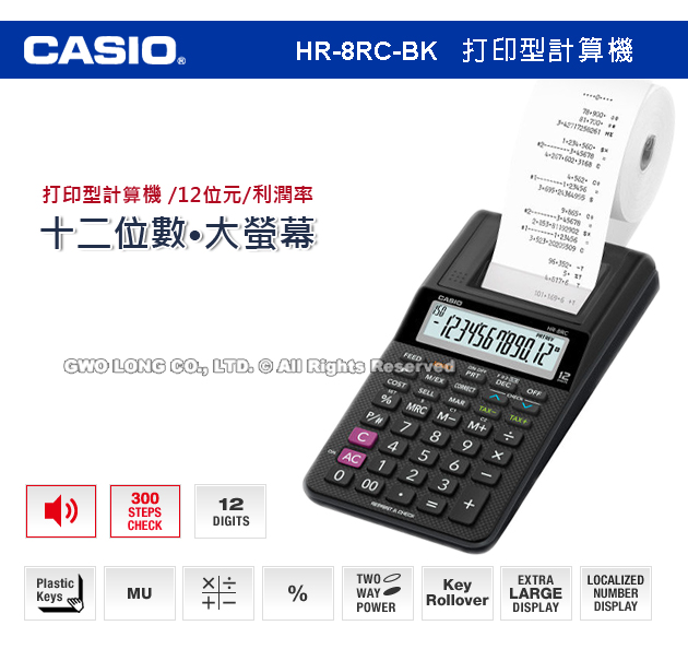 HR-8RC-BK CASIO 打紙帶計算機