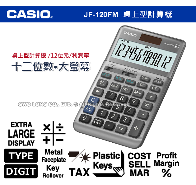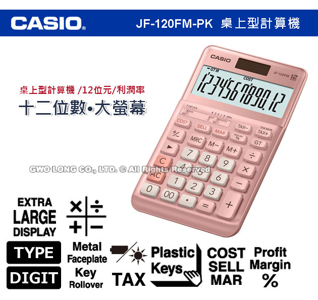 JF-120FM/JF-120FM-PK CASIO 兩色 桌上型商用計算機 12位數 雙電力