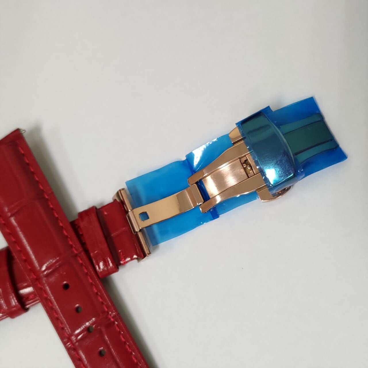 ░ 高質感 副廠皮革錶帶 棗紅色 竹節紋 蝴蝶錶扣 玫瑰金 20mm 全新品 ░