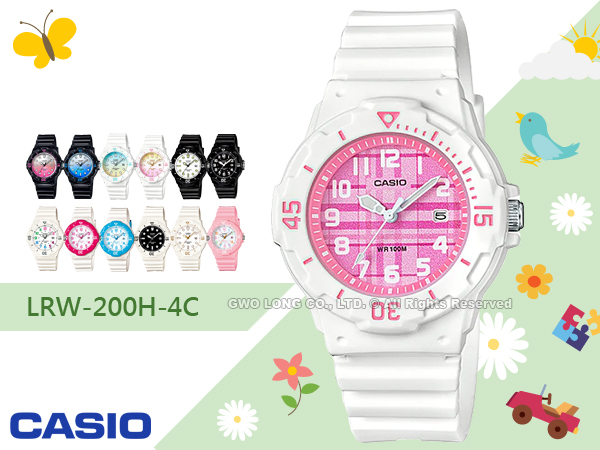 LRW-200H-4C CASIO 指針錶 橡膠錶帶 防水100米 可旋轉式錶圈 粉紅格紋 LRW-200H