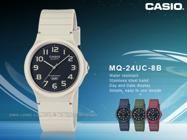 MQ-24UC-8B CASIO 指針錶 樹脂錶帶 生活防水 米白 MQ-24UC