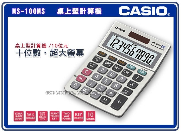 MS-100MS CASIO 計算機 國隆 商用型桌上型計算機_10 位數