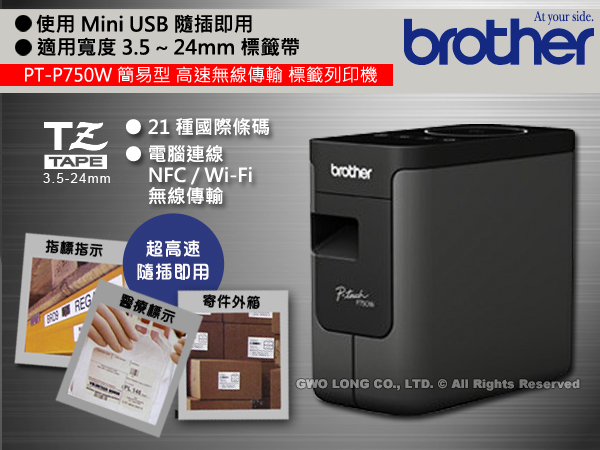 PT-P750W BROTHER 標籤機 簡易型 NFC / Wi-Fi 高速無線傳輸 標籤列印機
