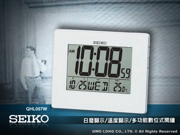 QHL057W SEIKO 鬧鐘 日曆顯示 貪睡功能 附立架