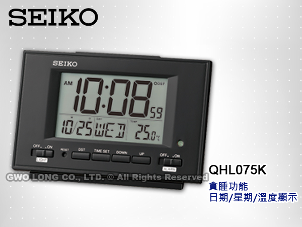 QHL075K SEIKO 鬧鐘 貪睡功能 溫度顯示 星期/日期顯示 QHL075