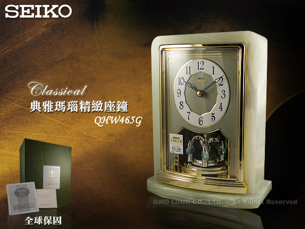 QHW465G SEIKO 典雅瑪瑙座鐘 施華洛世奇水晶