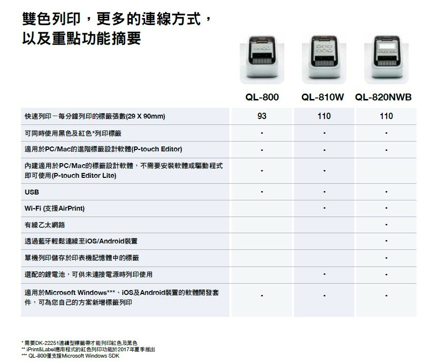 ◎可列印紅黑雙色 (需搭配DK-22251耐用紙質標籤帶使用)