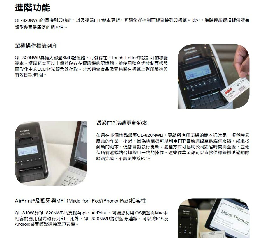 QL-820NWB brother 標籤列印機 超高速無線網路(WI-FI) 旗艦版 藍牙連線 公司貨