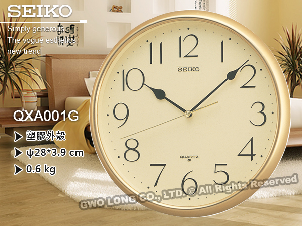QXA001G SEIKO 精工 簡約指針掛鐘 滑動式秒針 黃面數字 28公分 QXA001