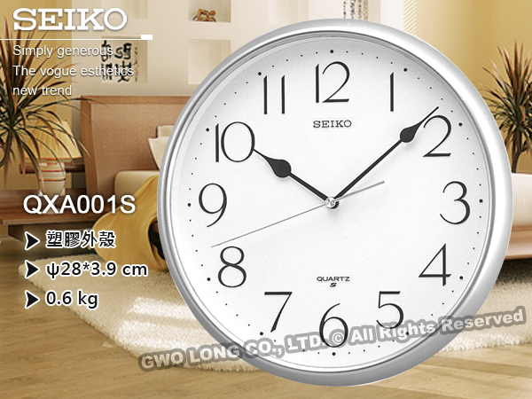 QXA001S SEIKO 精工 時尚簡約掛鐘 白面數字 28公分 QXA001