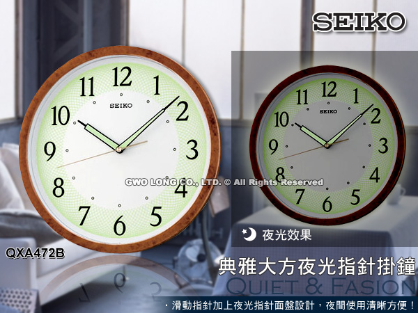 QXA472B SEIKO 夜光指針掛鐘 滑動式秒針設計