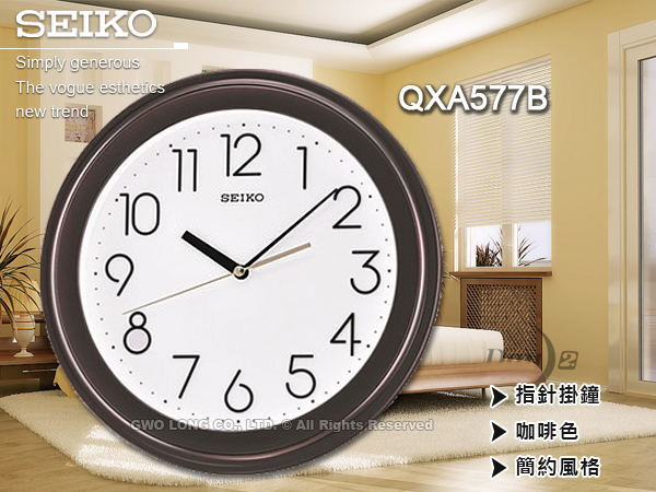 QXA577B SEIKO 簡約棕色指針掛鐘 塑膠外殼
