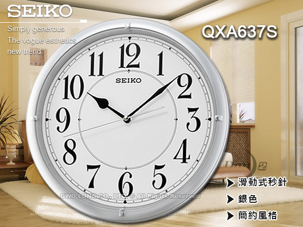 QXA637S SEIKO 時尚銀框白面指針掛鐘 滑動式秒針 QXA637