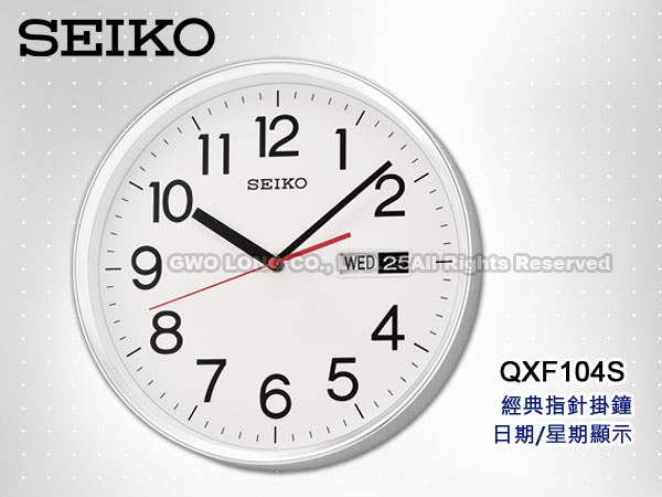 QXF104S SEIKO 經典全白指針掛鐘 日期/星期顯示