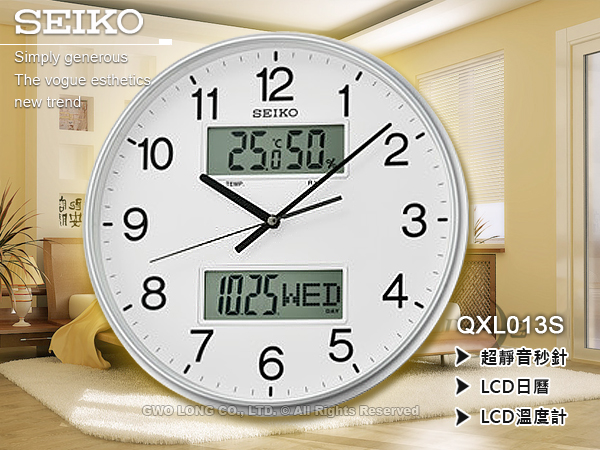 QXL013S SEIKO 多功能指針掛鐘 LCD日曆 超靜音秒針