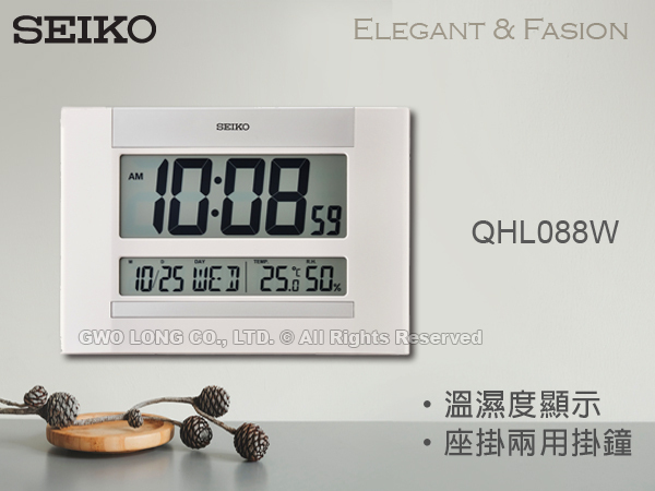 QHL088W SEIKO 精工 溫溼度顯示 日期 日曆 座掛兩用 掛鐘 座鐘 電子鐘 QHL088