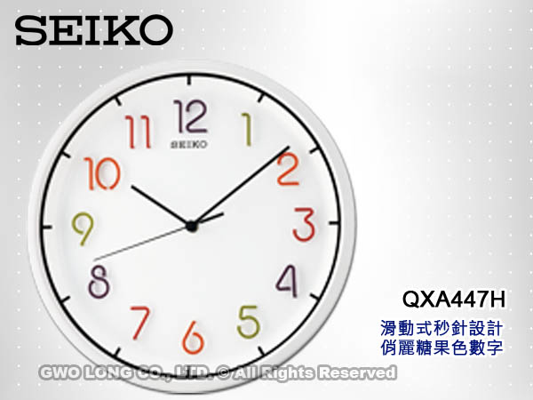 SEIKO 精工掛鬧鐘 國隆 QXA447H 滑動式秒針 Candy Color立體數字指針掛鐘