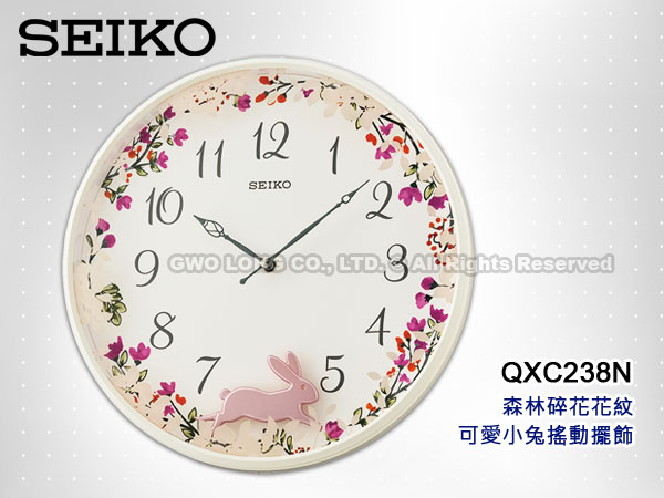 QXC238W SEIKO 掛鐘 森林小兔跳躍掛鐘 米白面 粉色系花紋