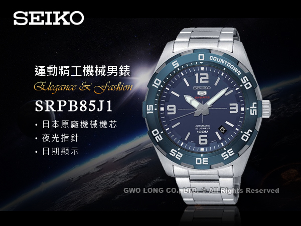 SRPB85J1 SEIKO 日製運動機械男錶 不鏽鋼錶帶 深海藍 防水100米