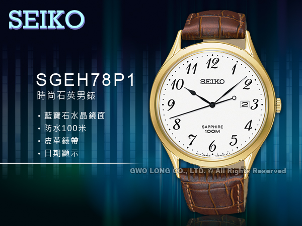 SGEH78P1 SEIKO 時尚石英男錶 皮革錶帶 藍寶石水晶 白色錶盤