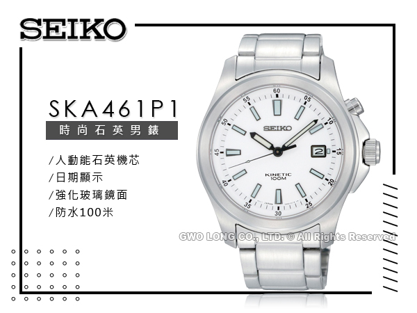 SKA461P1 SEIKO 時尚人動能石英男錶 不鏽鋼錶帶 白面 防水100米